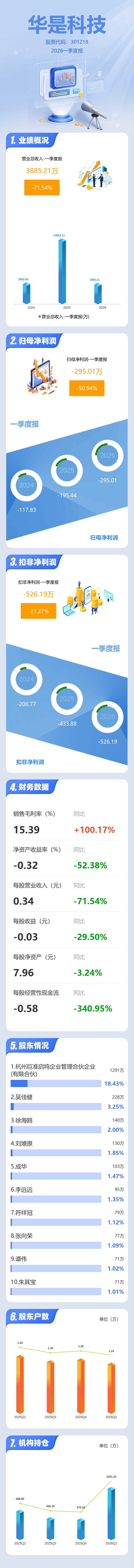 证券之星消息,华是科技2026年一季报显示,一季度公司主营收入3885.21万元,同比下降71.54%;归母净利润-295.01万元,同比下降50.95%;扣非净利润-526.19万元,同比下降21.28%;负债率40.45%,投资收益11.98万元,财务费用-174.23万元,毛利率15.39%。