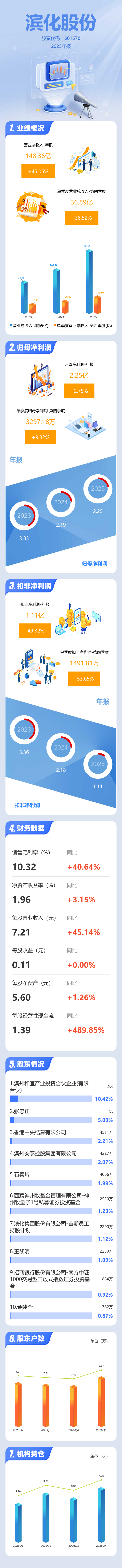 证券之星消息,滨化股份2025年年报显示,当年度公司主营收入148.36亿元,同比上升45.06%;归母净利润2.25亿元,同比上升2.75%;扣非净利润1.11亿元,同比下降49.33%;其中2025年第四季度,公司单季度主营收入36.89亿元,同比上升38.53%;单季度归母净利润3297.18万元,同比上升9.83%;单季度扣非净利润1491.81万元,同比下降53.66%;负债率49.9%,投资收益-7239.79万元,财务费用3.57亿元,毛利率10.32%。