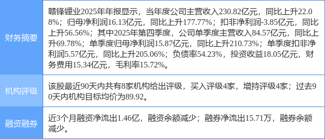 2026年1月28日,东吴证券研究员曾朵红,阮巧燕发布了对赣锋锂业的研报《2025年业绩预告点评:锂价上涨贡献弹性,Q4业绩反转》,该研报对赣锋锂业给出“买入”评级,认为其目标价为112.0元,现价距离目标价尚有31.78%的涨幅空间。证券之星数据中心根据近三年发布的研报数据计算,该研报作者对此股的盈利预测准确度为52.04%。