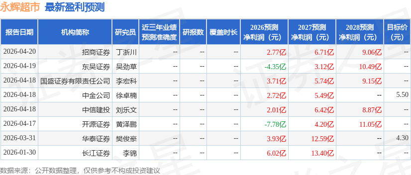 山西证券股份有限公司王冯,孙萌近期对永辉超市进行研究并发布了研究报告《调改门店数量达327家,2026Q1单季度实现盈利》,给予永辉超市增持评级。
