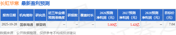 最新盈利预测明细如下: