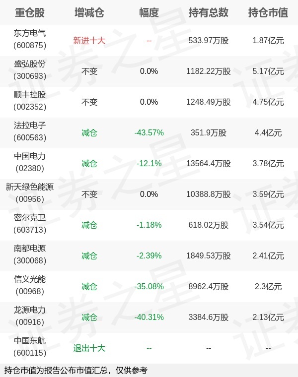 证券之星消息,4月22日前海开源基金旗下崔宸龙管理的前海开源公用事业行业股票型基金公布一季报,近1年净值增长率32.36%。与上一季度相比,该基金前十大重仓股新增东方电气;其中盛弘股份持仓占比8.7%,为该基金第一大重仓股;中国东航等退出前十大重仓股;详细数据如下:以上内容为证券之星据公开信息整理,由AI算法生成(网信算备310104345710301240019号),不构成投资建议。