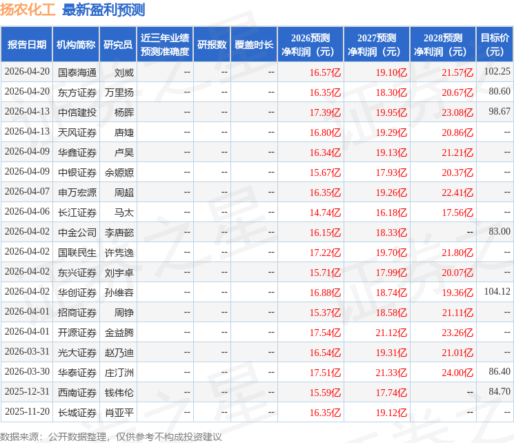 最新盈利预测明细如下: