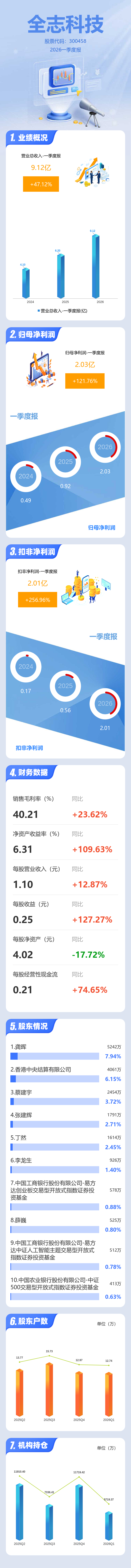 证券之星消息,全志科技2026年一季报显示,一季度公司主营收入9.12亿元,同比上升47.12%;归母净利润2.03亿元,同比上升121.77%;扣非净利润2.01亿元,同比上升256.97%;负债率18.73%,投资收益-22.97万元,财务费用-1060.15万元,毛利率40.21%。