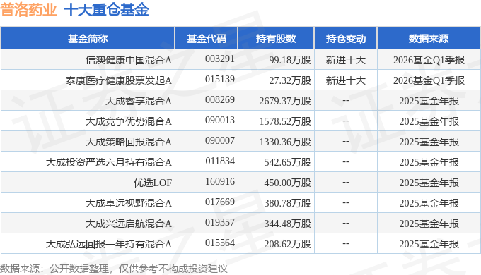持有普洛药业最多的基金为信澳健康中国混合A,目前规模为3.54亿元,最新净值2.37(4月21日),较上一交易日下跌0.5%,近一年上涨16.52%。该基金现任基金经理为李君周。