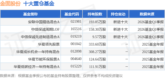 根据2026基金Q1季报公募基金重仓股数据,重仓该股的公募基金共3家,其中持有数量最多的公募基金为安联基金的安联中国精选混合A。安联中国精选混合A目前规模为1.76亿元,最新净值1.9216(4月20日),较上一交易日下跌0.57%,近一年上涨71.88%。该公募基金现任基金经理为程彧。