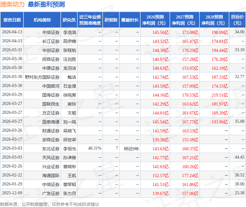证券之星消息,2026年4月20日潍柴动力(000338)发布公告称公司于2026年4月15日接受机构调研,睿远基金郑斌、银河基金杨琪 施文琪 祝建辉 袁曦 王少南、招商证券杨献宇 顾雨梦、德邦基金陈艳妮、申万菱信基金谢欣雨、其他、聚鸣投资苏勃瑞、资本集团忻慧婷、摩根资产管理Weiying Dong Shuyu Gao、华安基金刘文靓 文康 金拓 王春 倪文凡、富国基金冯升、中庸资本周知然 杨崞 徐家祥、汇添富基金韩超、华夏基金马新凯参与。