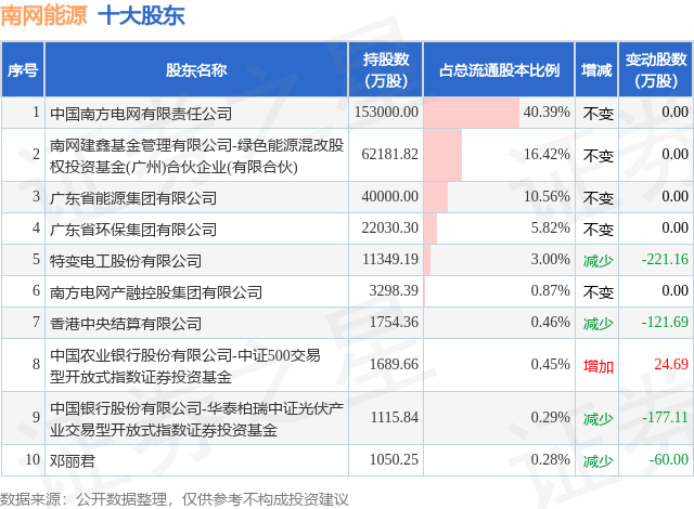 根据南网能源2025年年报公布的十大股东详情如下:
