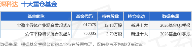 重仓深科达的公募基金请见下表: