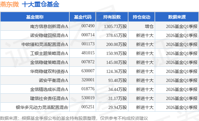 重仓燕东微的前十大公募基金请见下表:
