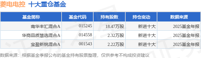 重仓菱电电控的公募基金请见下表: