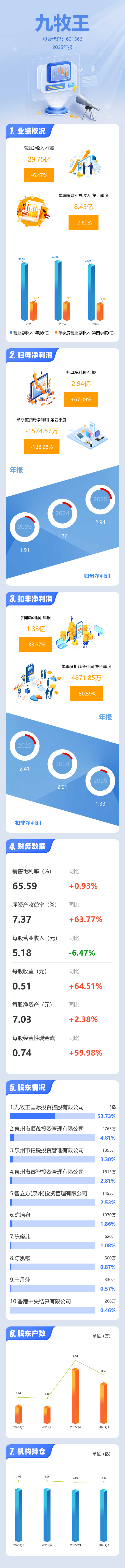证券之星消息,九牧王2025年年报显示,当年度公司主营收入29.75亿元,同比下降6.48%;归母净利润2.94亿元,同比上升67.1%;扣非净利润1.33亿元,同比下降33.67%;其中2025年第四季度,公司单季度主营收入8.45亿元,同比下降7.61%;单季度归母净利润-1574.57万元,同比下降138.29%;单季度扣非净利润4871.85万元,同比下降50.59%;负债率28.71%,投资收益6134.97万元,财务费用1063.57万元,毛利率65.59%。