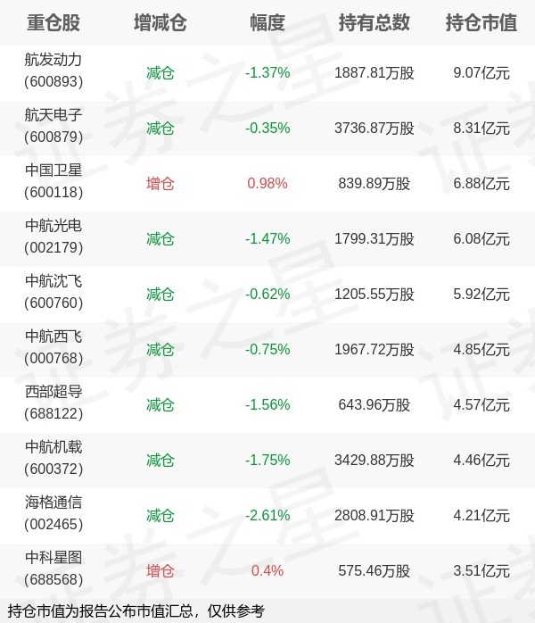 证券之星消息,4月22日富国基金旗下王乐乐 牛志冬管理的富国中证军工龙头交易型开放式指数基金公布一季报,近1年净值增长率33.81%。其中航发动力持仓占比9.47%,为该基金第一大重仓股;详细数据如下: