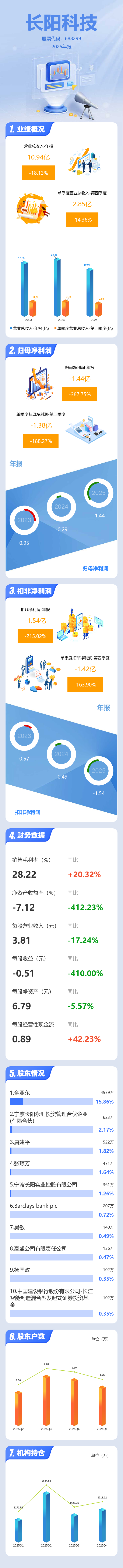 证券之星消息,长阳科技2025年年报显示,当年度公司主营收入10.94亿元,同比下降18.13%;归母净利润-1.44亿元,同比下降387.75%;扣非净利润-1.54亿元,同比下降215.02%;其中2025年第四季度,公司单季度主营收入2.85亿元,同比下降14.37%;单季度归母净利润-1.38亿元,同比下降188.27%;单季度扣非净利润-1.42亿元,同比下降163.91%;负债率38.91%,投资收益-275.33万元,财务费用1547.35万元,毛利率28.22%。