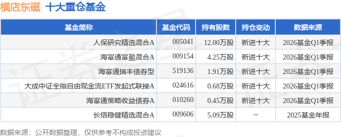 持有横店东磁最多的基金为人保研究精选混合A,目前规模为0.95亿元,最新净值1.9938(4月23日),较上一交易日下跌0.96%,近一年上涨58.6%。该基金现任基金经理为吴若宗。