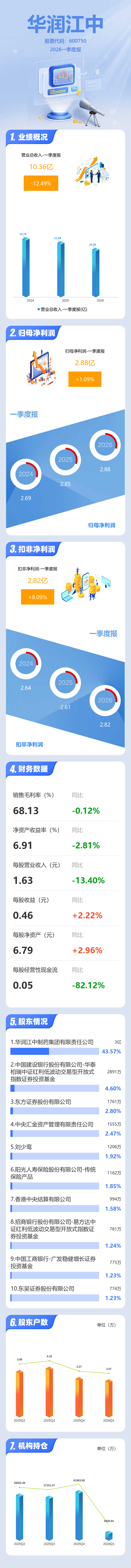 证券之星消息,华润江中2026年一季报显示,一季度公司主营收入10.36亿元,同比下降12.49%;归母净利润2.88亿元,同比上升1.1%;扣非净利润2.82亿元,同比上升8.09%;负债率29.88%,投资收益-21.74万元,财务费用-1523.74万元,毛利率68.13%。