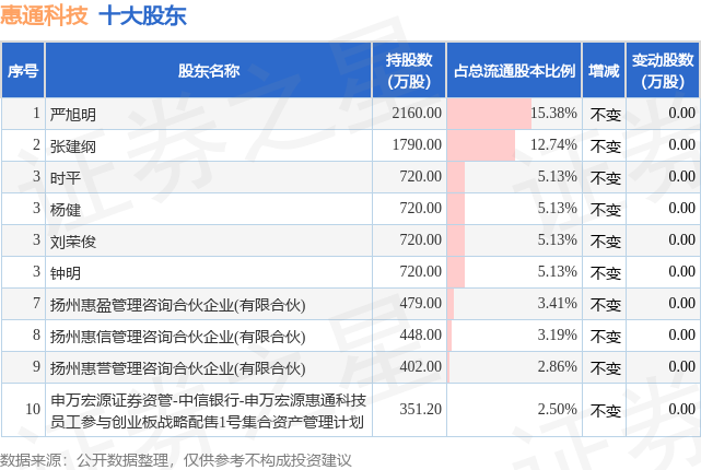 根据惠通科技2025年三季报公布的十大股东详情如下: