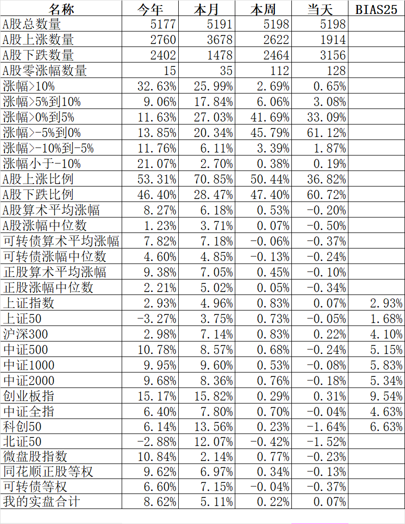 1914只个股上涨,3156只个股下跌,涨幅中位数-0.50%。