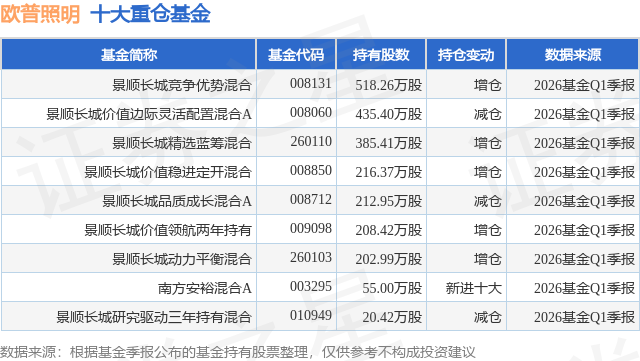 重仓欧普照明的公募基金请见下表: