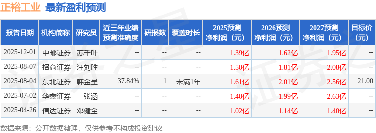 据证券之星公开数据整理,近期正裕工业(603089)发布2025年年报。截至本报告期末,公司营业总收入27.8亿元,同比上升20.7%,归母净利润1.05亿元,同比上升47.53%。按单季度数据看,第四季度营业总收入7.08亿元,同比上升6.7%,第四季度归母净利润-2648.19万元,同比下降207.12%。本报告期正裕工业应收账款上升,应收账款同比增幅达31.23%。