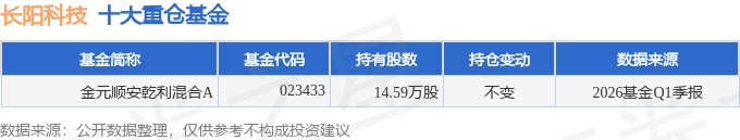 持有长阳科技最多的基金为金元顺安干利混合A,目前规模为0.22亿元,最新净值1.0564(4月23日),较上一交易日下跌0.76%。该基金现任基金经理为商昌层 张海东。