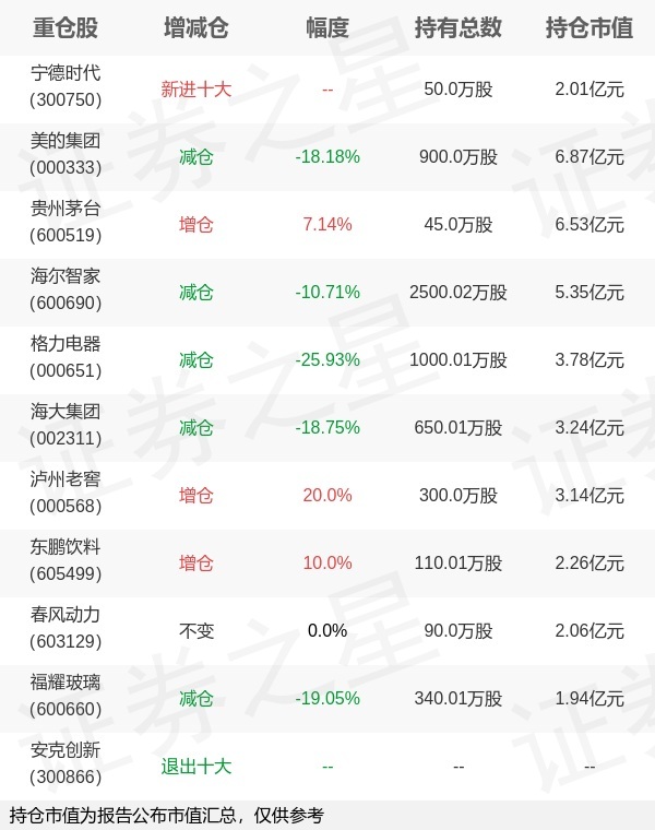 证券之星消息,4月22日汇添富基金旗下胡昕炜管理的汇添富消费行业混合型基金公布一季报,近1年净值增长率-2.39%。与上一季度相比,该基金前十大重仓股新增宁德时代;其中美的集团持仓占比9.43%,为该基金第一大重仓股;安克创新等退出前十大重仓股;详细数据如下:以上内容为证券之星据公开信息整理,由AI算法生成(网信算备310104345710301240019号),不构成投资建议。