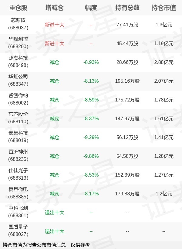 证券之星消息,4月22日博时基金旗下唐屹兵管理的博时上证科创板100交易型开放式指数基金公布一季报,近1年净值增长率64.59%。与上一季度相比,该基金前十大重仓股新增芯源微,华峰测控;其中源杰科技持仓占比4.73%,为该基金第一大重仓股;中科飞测,国盾量子等退出前十大重仓股;详细数据如下:以上内容为证券之星据公开信息整理,由AI算法生成(网信算备310104345710301240019号),不构成投资建议。