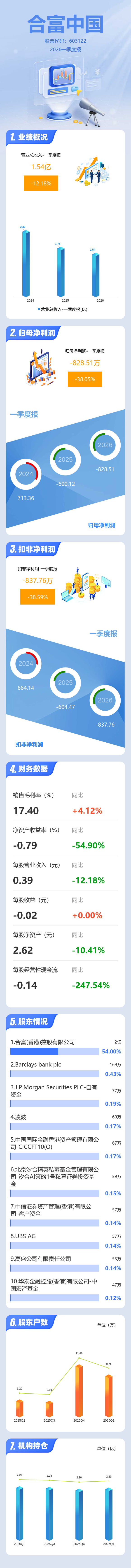 证券之星消息,合富中国2026年一季报显示,一季度公司主营收入1.54亿元,同比下降12.18%;归母净利润-828.51万元,同比下降38.06%;扣非净利润-837.76万元,同比下降38.59%;负债率26.02%,投资收益-4.48万元,财务费用33.33万元,毛利率17.4%。