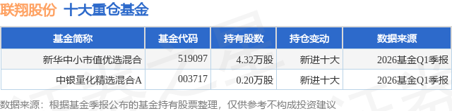 重仓联翔股份的公募基金请见下表: