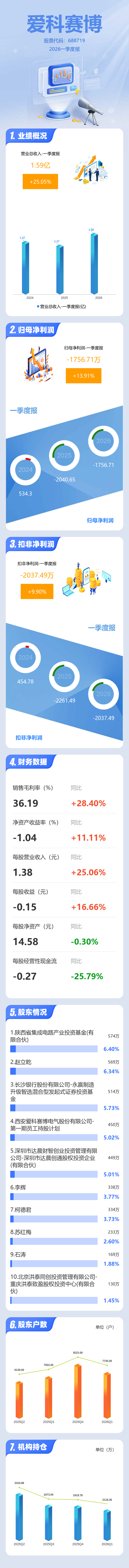 证券之星消息,爱科赛博2026年一季报显示,一季度公司主营收入1.59亿元,同比上升25.06%;归母净利润-1756.71万元,同比上升13.91%;扣非净利润-2037.49万元,同比上升9.9%;负债率30.93%,投资收益-5.77万元,财务费用51.65万元,毛利率36.19%。