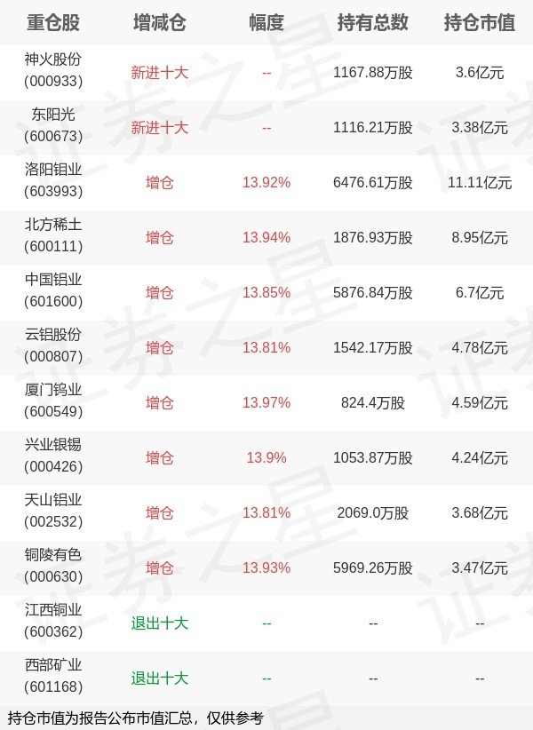 证券之星消息,4月21日万家基金旗下贺方舟管理的万家中证工业有色金属主题交易型开放式指数基金公布一季报,近1年净值增长率128.14%。与上一季度相比,该基金前十大重仓股新增神火股份,东阳光;并对洛阳钼业增仓791.26万股,为该基金第一大重仓股;江西铜业,西部矿业等退出前十大重仓股;详细数据如下: