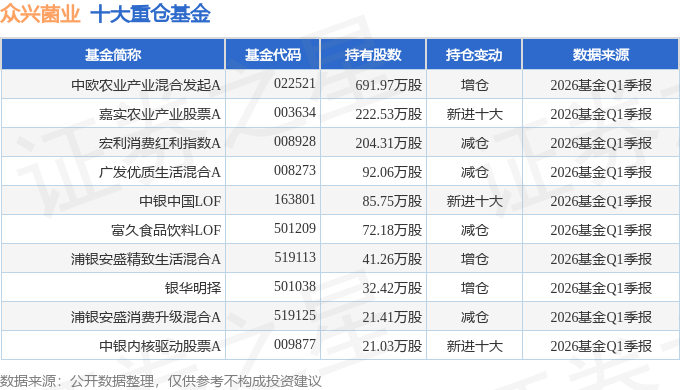 最近有知名机构关注了公司以下问题:问:尊敬的董事长您好。公司于去年启动了股权激励计划,对应未来三年的业绩表现作出了激励安排。公司对于未来三年的发展战略有什么安排,未来三年的业务收入结构会有什么变化?三年的战略发展目标是怎么安排的?答:尊敬的投资者您好,非常感谢您对公司的关注与支持!公司将继续根据“立足西北、面向全国、走向世界”的生产基地布局战略以及“以金针菇和双孢菇为主,多品种协同发展”的种植品种发展战略,坚守“和谐、安全、优质、稳产、高效”的经营方针,致力于为消费者提供绿色、安全、高品质的食用菌产品。同时不断优化产业布局,积极推进“冬虫夏草工厂化生态繁育项目”建设,以增加公司新的盈利增长点,不断提升综合竞争实力。相关战略目标及后期公司的经营成果,请以公司后续公告为准,谢谢!问题2尊敬的董事长您好。公司资产负债率50.14%,较上年增加 3.75 个百分点,公司有无降低负债和进一步减少财务费用的具体方案和计划?是否有发行公司债、可转债或银行中期票据的计划或方案?尊敬的投资者您好,非常感谢您对公司的关注与支持!公司 2025 年末资产负债率上升主要与新项目建设储备融资及资产租赁挂账等因素相关,目前处于可控范围内。公司已通过置换前期高利率融资、利率下降后将短贷续为长贷等方式降低财务费用。发行债券事项请参阅公司相关公告。谢谢!问题 3尊敬的董事长您好。江苏众兴“涟水食用菌产业园项目”、安徽众兴二期“年产 2 万吨双孢蘑菇秸秆综合利用扩建项目计划竣工时间是什么时候?该项目完成后公司双孢菇的总产能是多少?22 家子公司中,主要有哪些子公司负责生产双孢菇?尊敬的投资者您好,非常感谢您对公司的关注与支持!根据公司 2026 年度经营计划,江苏众兴“涟水食用菌产业园项目”及安徽众兴二期“年产 2 万吨双孢蘑菇秸秆综合利用扩建项目”预计于2026年建成投产。截至 2025 年末,公司双孢菇生产基地有江苏众友、安阳众兴、安徽众兴、五河众兴及湖北众兴,谢谢!问题 4尊敬的财务总监您好。公司租赁负债 0.88亿元,具体是什么项目?各自的金额是多少?尊敬的投资者您好,非常感谢您对公司的关注与支持!2025 年末租赁负债主要为四川众兴基地租赁厂房 15 年期对应的租赁费折现额。谢谢!问题 5领导,您好!请问,公司主要原材料(米糠、玉米芯、麸皮、棉籽壳等)价格走势、占成本比例、采购策略、成本管控措施?尊敬的投资者您好,非常感谢您对公司的关注与支持!公司主要原材料采购价格 2021 至 2023 年期间随着国际大宗物资价格变动有所上涨,之后逐渐下降并陆续企稳;原材料占成本的比例约为 40%左右;公司采购策略等请参阅年报“公司主要的经营模式”相关章节。谢谢!问题 6请问公司最近股价大幅调整,不知公司是否有购股份的意向?尊敬的投资者您好,非常感谢您对公司的关注与支持!公司暂无购计划,未来如有相关事项,公司将严格按照相关规定履行信息披露义务,请以公司公告为准,谢谢!问题 7尊敬的董秘总及公司高管作为一位公司二级市场投资的散户投资人,对 2025 年公司取得的成绩表示衷心的祝贺,对公司管理层一年来辛苦的付出给予充分的尊重和肯定!提一个问题请问贵司 2026 年第 1季度业绩是否有大幅增长?2026 全年贵司是否会在 25 年取得重大成绩基础上更上一层楼?感谢您百忙中给予!尊敬的投资者您好,非常感谢您对公司的关注与支持!公司 2026 年第一季度业绩相关信息,公司将按相关规定在指定信息披露媒体进行披露,请以公司后续发布的一季度报告为准。2026 年度公司将继续聚焦主业,扎实推进各项工作,具体 2026 年度的经营情况请以公司 2026 年度报告为准。感谢您的支持!问题 8独董您好,作为中小股东代表,请问您对公司当前项目推进、信息披露以及资金使用效率是否认可?有无需要提醒公司改进的地方?尊敬的投资者您好,非常感谢您对公司的关注与支持!作为公司的独立董事,严格按照《公司法》《上市公司治理准则》《上市公司独立董事管理办法》《深圳证券交易所股票上市规则》《深圳证券交易所上市公司自律监管指引第 1号-主板上市公司规范运作》等相关法律法规、规范性文件及《公司章程》 《独立董事工作制度》等的规定,本着客观、公正原则,诚信、勤勉、忠实、独立履行职责,持续关注公司重点项目的推进,督促公司按计划推进并做好风险管控工作;督促公司真实、准确、完整的履行信息披露义务;督促公司审慎决策日常经营资金管理。 后续将持续督促公司进一步提升项目管理精细化水平、优化资金配置与使用效率、持续完善信息披露质量,切实维护公司及全体股东特别是中小股东的合法权益。感谢您的关注与建议!问题 9注意到公司目前同时推进双孢菇扩产、冬虫夏草繁育等多个项目建设与厂房改造,项目多、投入大,请问管理层是否存在管理力量分散、项目管控难度加大的问题?如何保障各项目按进度、按预算顺利落地?尊敬的投资者您好,非常感谢您对公司的关注与支持!公司在项目投资前已进行了充分的评估,建立了系统的管控体系。公司成立了项目领导小组,实行项目负责制,每个项目明确专人负责,全程跟踪,定期复盘,重点对项目建设情况、融资需求、要素保障等方面进行调查摸底,扫清项目建设中遇到的困