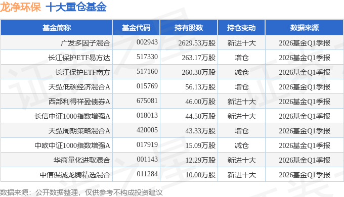 持有龙净环保最多的基金为广发多因子混合,目前规模为146.64亿元,最新净值5.3532(4月22日),较上一交易日上涨2.21%,近一年上涨41.94%。该基金现任基金经理为杨冬。