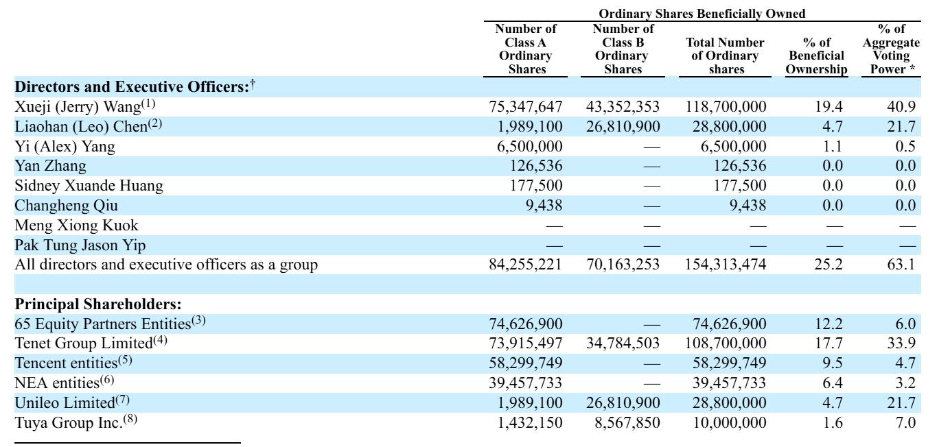 截至2026年3月31日,王学集共持有118,700,000股,有19.4%股权,及40.9%的投票权;陈燎罕共持有28,800,000股,有4.7%的股权,及21.7%的投票权;杨懿持有6,500,000股,有1.1%的股权,及0.5%的投票权。