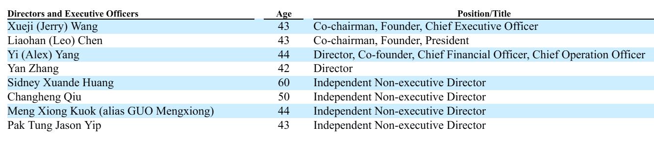 涂鸦智能(NYSE:TUYA,HKEX:2391)日前发布20-F文件,文件显示,涂鸦智能执行董事分别为联席董事长、CEO王学集,联席董事长陈燎罕、杨懿、张燕女士;独立非执行董事分别为黄宣德、邱昌恒、郭孟雄、叶柏东。