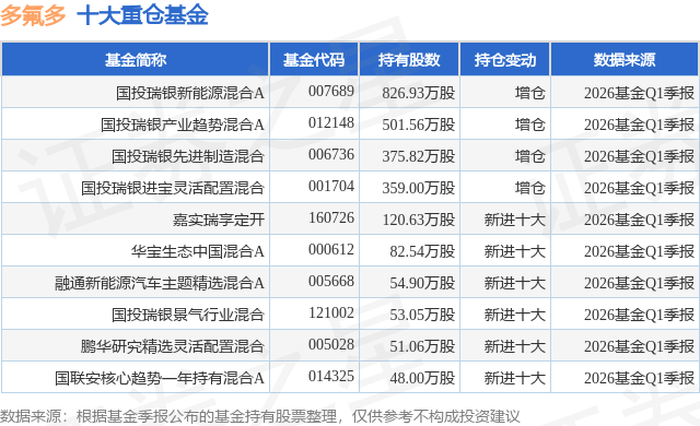 根据2026基金Q1季报公募基金重仓股数据,重仓该股的公募基金共16家,其中持有数量最多的公募基金为国投瑞银基金的国投瑞银新能源混合A。国投瑞银新能源混合A目前规模为18.02亿元,最新净值2.5726(4月23日),较上一交易日下跌3.61%,近一年上涨95.87%。该公募基金现任基金经理为施成。施成在任的基金产品包括:国投瑞银先进制造混合,管理时间为2019年3月29日至今,期间收益率为242.76%;国投瑞银进宝灵活配置混合,管理时间为2020年1月23日至今,期间收益率为133.36%;国投瑞银产业趋势混合A,管理时间为2021年6月9日至今,期间收益率为15.8%。
