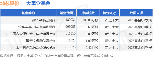 重仓灿芯股份的公募基金请见下表: