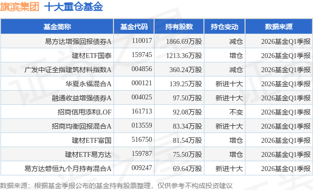 重仓旗滨集团的前十大公募基金请见下表: