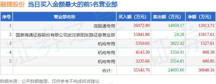 证券之星消息,沪深交易所2026年4月24日公布的交易公开信息显示,融捷股份(002192)因日涨幅偏离值达到7%的前5只证券登上龙虎榜。此次是近5个交易日内第1次上榜。