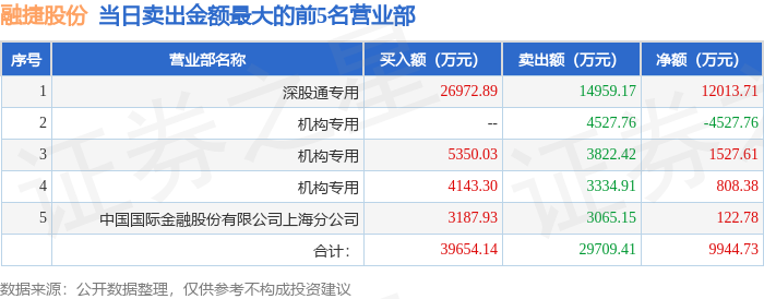 证券小知识:龙虎榜是交易所披露的竞价交易公开信息,现身龙虎榜的个股都是当日最为活跃的个股,是投资者日常重点关注的数据。交易所公布当日买入金额和卖出金额前五名的席位,其中一些席位代表特殊意义,如机构专用席位是指基金专用席位、券商自营专用席位、社保专用席位、券商理财专用席位、保险机构专用席位、保险机构租用席位、QFII专用席位等机构投资者买卖证券的专用通道和席位。深股通专用、沪股通专用为北向资金的交易席位。