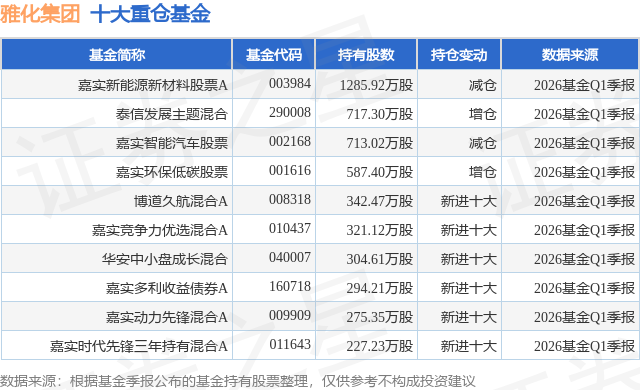重仓雅化集团的前十大公募基金请见下表: