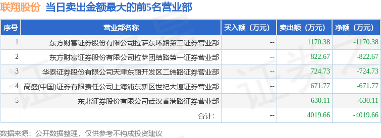 证券之星消息,沪深交易所2026年4月23日公布的交易公开信息显示,联翔股份(603272)因有价格涨跌幅限制的日收盘价格跌幅偏离值达到7%的前五只证券登上龙虎榜。此次是近5个交易日内第4次上榜。