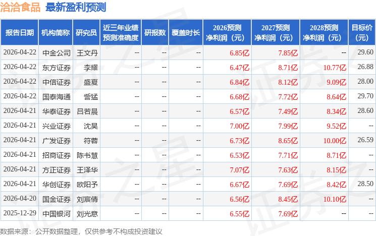 开源证券股份有限公司张宇光,方一苇近期对洽洽食品进行研究并发布了研究报告《渠道+产品双点发力,2026Q1收入利润超预期》,给予洽洽食品增持评级。