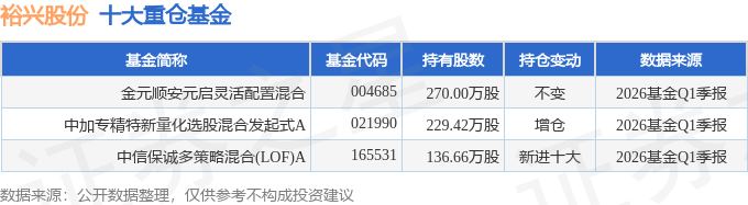持有裕兴股份最多的基金为金元顺安元启灵活配置混合,目前规模为15.76亿元,最新净值6.8014(4月23日),较上一交易日下跌0.51%,近一年上涨37.3%。该基金现任基金经理为缪玮彬。