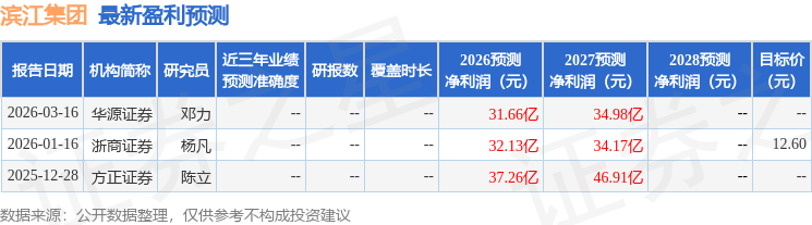 最新盈利预测明细如下: