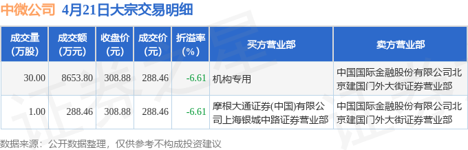证券之星消息,4月21日中微公司发生大宗交易,交易数据如下: