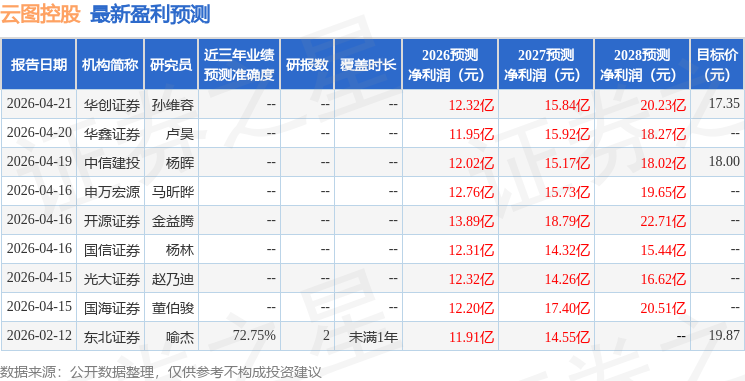 证券之星数据中心根据近三年发布的研报数据计算,东北证券喻杰研究员团队对该股研究较为深入,近三年预测准确度均值为72.75%,其预测2026年度归属净利润为盈利11.91亿,根据现价换算的预测PE为14.84。