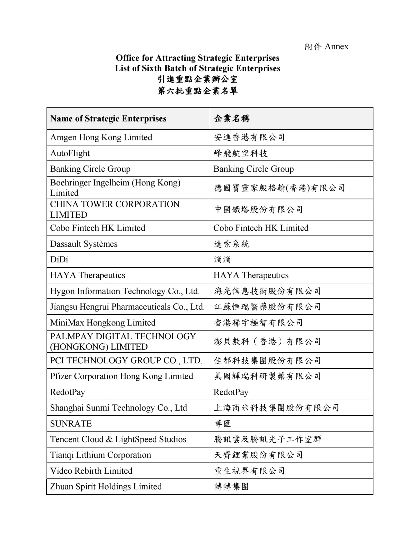 4月20日,香港特区政府引进重点企业办公室(OASES,下称“引进办”)举办重点企业签署仪式,迎来新一批共22家重点企业落户香港或拓展在港业务,其中包含多家市值超千亿港元的行业龙头企业。