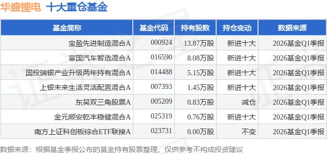 根据2026基金Q1季报公募基金重仓股数据,重仓该股的公募基金共7家,其中持有数量最多的公募基金为宝盈基金的宝盈先进制造混合A。宝盈先进制造混合A目前规模为3.89亿元,最新净值2.705(4月22日),较上一交易日上涨0.3%,近一年上涨68.12%。该公募基金现任基金经理为朱凯。朱凯在任的基金产品包括:宝盈睿丰创新混合A/B,管理时间为2025年2月27日至今,期间收益率为6.94%。