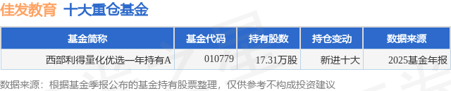 根据2025基金年报公募基金重仓股数据,重仓该股的公募基金共1家,其中持有数量最多的公募基金为西部利得基金的西部利得量化优选一年持有A。西部利得量化优选一年持有A目前规模为2.49亿元,最新净值1.3139(4月23日),较上一交易日下跌1.59%,近一年上涨56.65%。该公募基金现任基金经理为翟梓舰。翟梓舰在任的基金产品包括:西部利得中证1000指数增强A,管理时间为2023年10月21日至今,期间收益率为63.0%;西部利得人工智能主题指数增强A,管理时间为2024年11月30日至今,期间收益率为87.32%;西部利得智享量化选股混合A,管理时间为2026年4月14日至今,期间收益率为2.58%。
